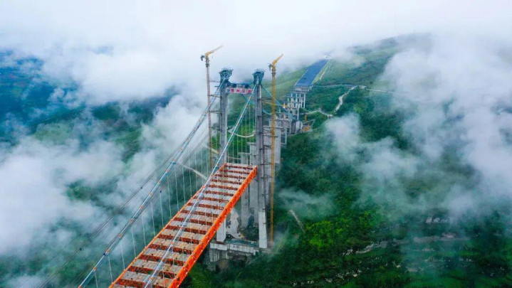采用跨径810米的无支架缆索吊装系统,将主拱圈分为88个节段空中作业,规避深谷支架难题。施工中对温度、线形、索力进行协同控制,确保成桥内力与线形精准符合设计。
